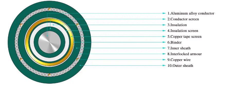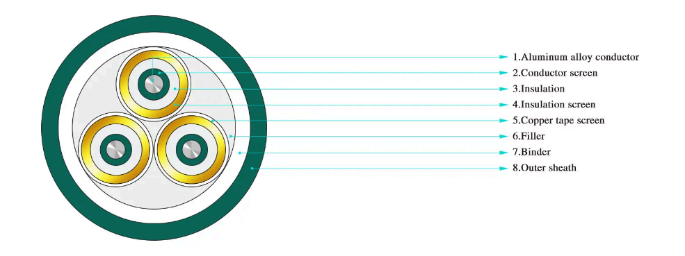 · 3.6/6kV~26/35kV থেকে রেটেড ভোল্টেজের জন্য থ্রি-কোর XLPE ইনসুলেশন পাওয়ার ক্যাবল